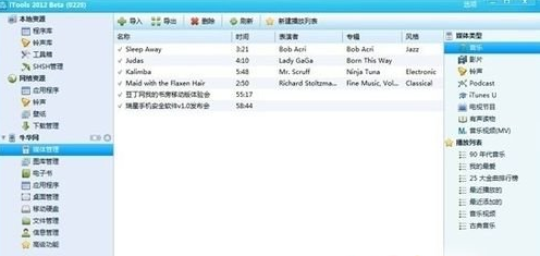 3、接著我們點擊媒體管理之後,選擇右側欄的鈴聲,點擊導入,選擇你剛才下載的鈴聲就可以導入手機了。 (請注意,導入那個按鈕在itools窗口的中間欄) 。
