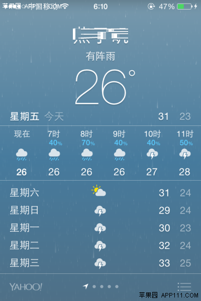 天氣預報在人們日常生活和工作中有著比較重要的作用,天氣狀況直接影響人們的出行。蘋果iPhone手機天氣應用,在升級iOS7系統後,可以自動顯示當地天氣狀況。具體操作方法: