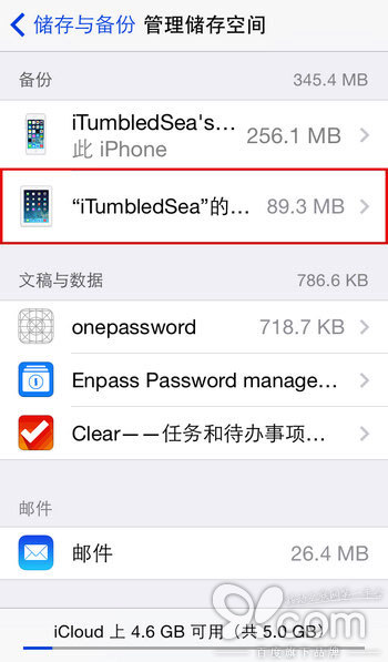 如何在 iOS 的 iCloud 設置面板刪除備份文件