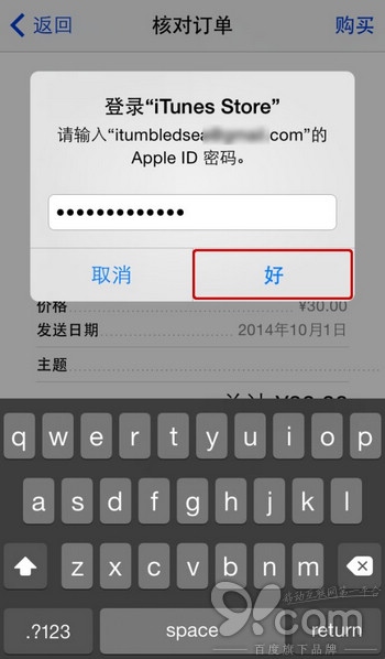第十一步:輸入你的 Apple ID 的密碼,接著點擊「好」按鈕來購買禮品。