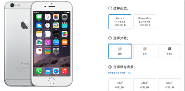 最新公布的價格依然與上一代沒有太多的改變,但最大的不同是取消了32GB版本,但新增加了128GB的版本,價格方面,iPhone 6現在的價格與去年iPhone 5s發布時的價格相同,詳細的請查看下面香港蘋果官方的報價。