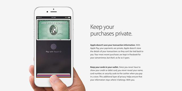 Apple Pay 的支付系統搭載Touch ID 指紋識別技術,在網上購物時用家只需要在手機上輕按主按鈕,便能簡單完成支付程序,無需再輸入信用卡號碼和密碼,讓網上購物更方便。(更新:這功能暫時只提支援美國地區部份商店店,如Sephora、Starbucks、Target等等)