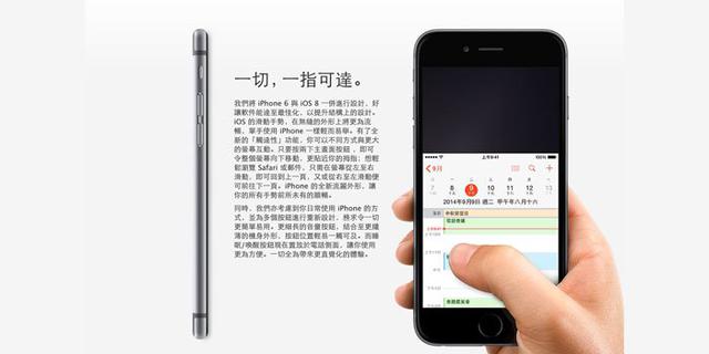 即使iPhone 6屏幕變大也能單手使用,新的「單手模式」功能用家只需輕按Home按鈕兩次屏幕顯示就會自動縮至下半部,即使騰不出另一只手也能輕松使用手機,對細手的女生來說確是不錯的功能。
