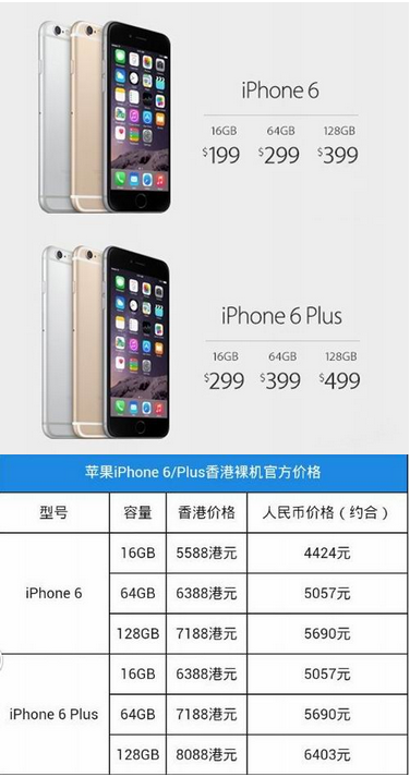 iPhone 6 Plus:16GB299美元,64GB399美元,128GB499美元