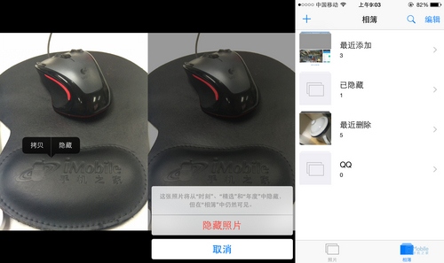 圖片浏覽除了提供更加方便的檢索功能之外,現在還可以隱藏照片,但這裡的隱藏還是可以在“相簿”中可見。iOS8中還提供了“最近刪除”文件夾,這裡可以保留最近30天內用戶刪除的照片。急性子愛刪東西的用戶這下有後悔藥可吃了。