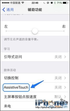 4、在輔助功能的底部有一個“AssistiveTouch”選項,點擊打開;