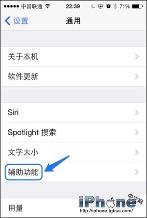 3、在通用列表中,找到“輔助功能”選項,點擊打開;