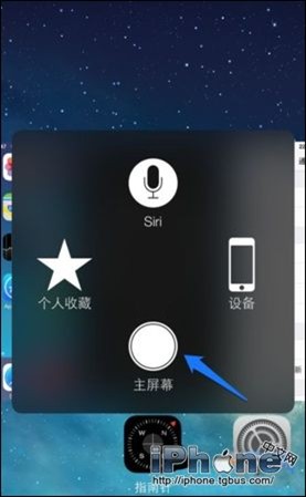 1、比如當我們打開一個應用程序以後,想要返回主屏時,就可以點擊主屏上的這個小圓點,然後再點擊“主屏幕”按鈕即可返回主屏幕了;
