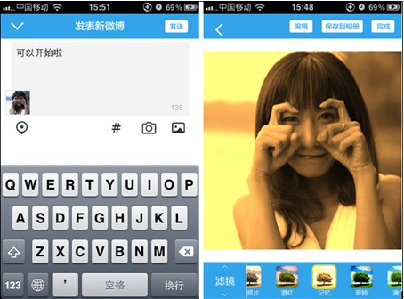 一、發微博圖片時可編輯美化,應用更多樣