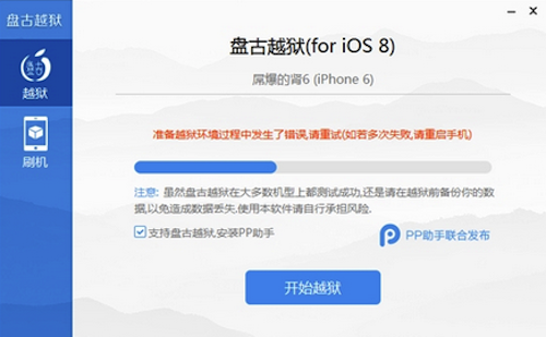 4、“准備越獄環境過程中發生了錯誤,請重試(如若多次失敗,請重啟手機)。”