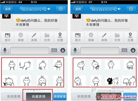 四、 啟動QQ2012,如果已經打開了,請先在後台關閉QQ2012之後,再次打開。隨便打開一個聊天窗口,點擊收藏表情,裡面就擁有了你存放進去的QQ自定義表情啦。(提醒:這個方法存在一個BUG,就是裝進去的表情用手機給人發的時候,自己這邊不會顯示圖片 只有進度條 而對方可以正常接收,從別人發來的收藏起來的就沒有這個問題)