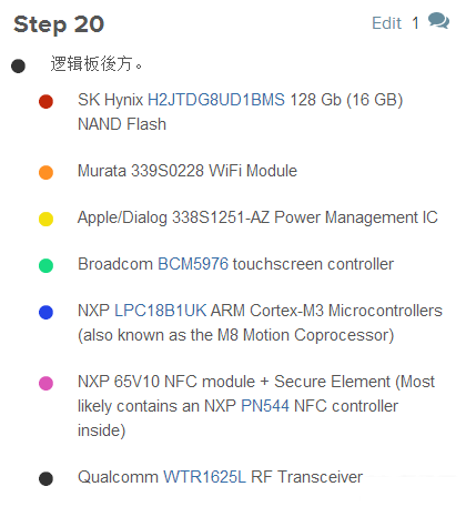 那麼實際情況是否如韓國媒體報道的那樣?帶著好奇,筆者查閱ifixit的拆機資。根據16G的真機實拆圖顯示,其采用來自韓國的海力士(SKhynix)的NAND FLASH,型號為 H2JTDG8UD1BMS。(圖中紅色部分)