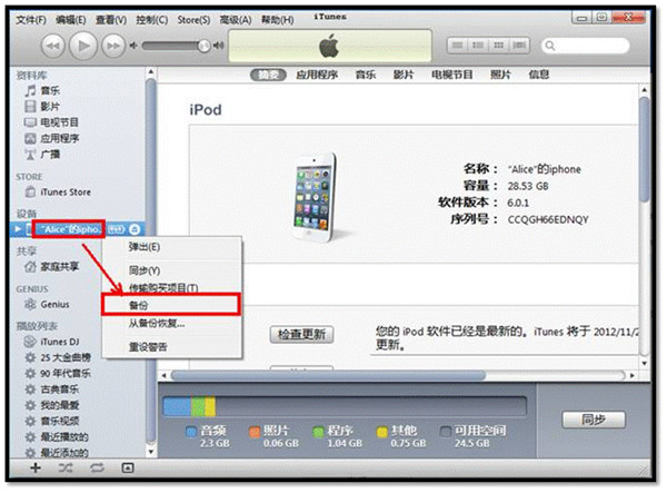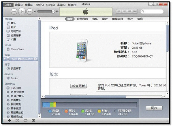 將iPhone手機連接至電腦,並打開iTunes軟件。