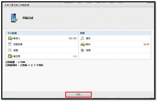 數據傳輸完成後確認手機導入信息,並點擊【完成】即可。