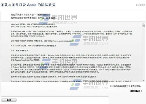 3、隨後進入到“條款與條件及Apple的隱私政策”,勾選右下角同意之後,選擇“繼續”。