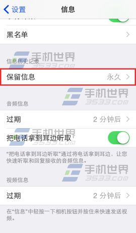 1)打開iPhone6Plus的【設置】,選擇【信息】,然後點擊【保留信息】。