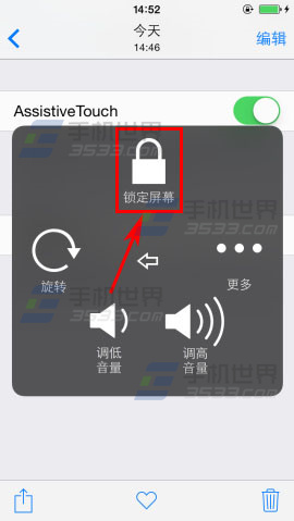 1)在任意界面點擊【小白點】,在彈出菜單選擇【設備】,然後長按【鎖定屏幕】即可跳轉到關機界面。