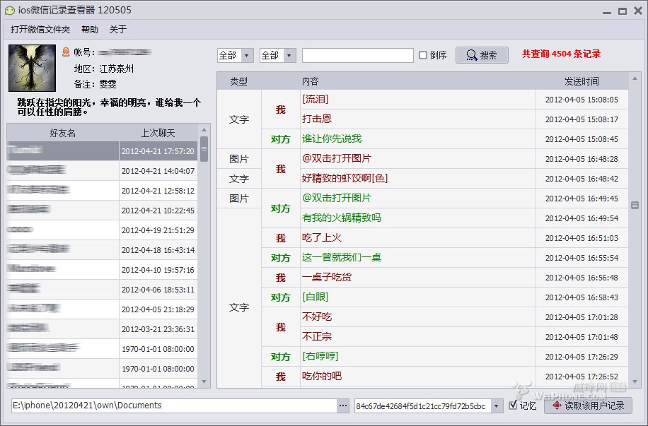 復制出來的目錄內容就需要用到一款ios微信記錄查看器來查看了