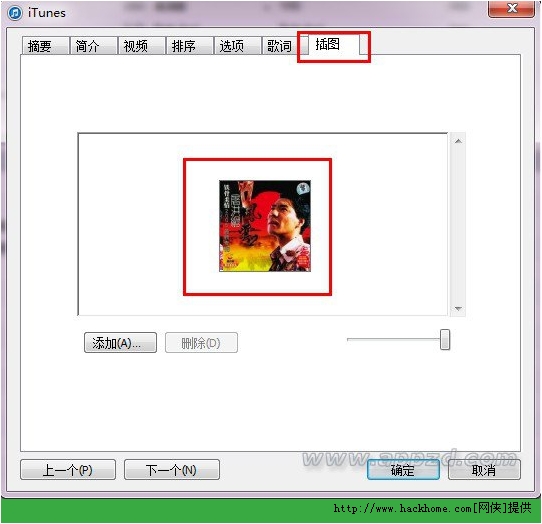 接著在簡介窗口中,選擇封面選項卡,輸入該專輯對應的封面圖片,可以直接在網上找到相關圖片,復制一下圖片然後在輸入框粘貼,也可以點添加按鈕從本地文件系統中選擇圖片: