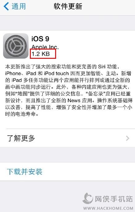 今日凌晨就更新的IOS9正式版,有人更新了,有人卻沒有收到任何通知,還有人在微博上曬出了升級ios9只需要1.2KB的截圖!這是什麼鬼?是真的嗎?沒錯,你的iOS9更新預下載包僅需1.2kb,也就是說,從IOS7過度到iOS9全新系統只需要1.2kb?具體的情況我們一起往下看!