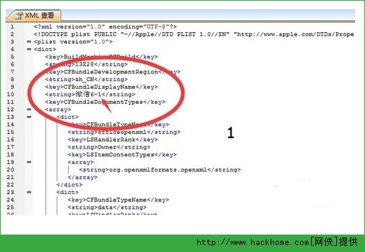 在解壓後的目錄中,尋找微信info.plist文件,並采用剛剛安裝的plist Editor軟件打開
