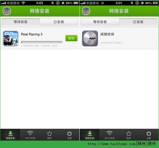 說得簡單點就是如果你在逛論壇的時候看中了鋒友分享的APP,之前你需要先到威鋒盤或者其他網盤上把ipa文件下載到PC上,然後通過各種工具來進行安裝。現在只需要點擊 “兔兔助手一鍵安裝”,然後打開手機上的兔兔助手就會發現它已經在幫你自動下載安裝啦!