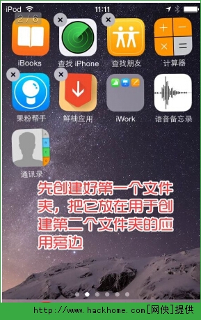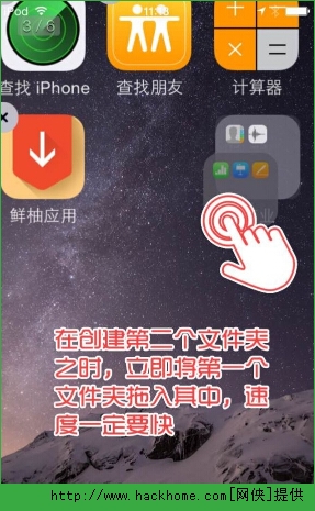 1.先創建一個文件夾,這個文件夾作為嵌套在裡面的文件夾 2.創建第二個文件夾的瞬間將第一個文件夾拖進去就可以了! 3.嵌套文件夾成功,返回主頁面看不到裡面的文件夾,也可以當隱藏應用呢