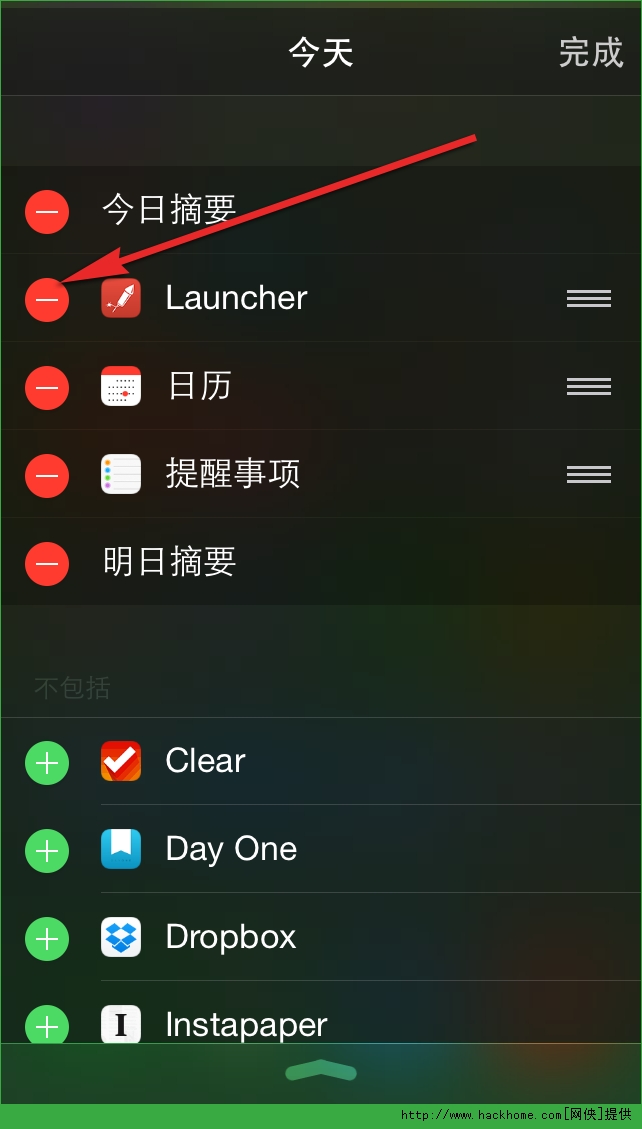 第四步:點擊右上角的「完成」按鈕確認移除該小部件。