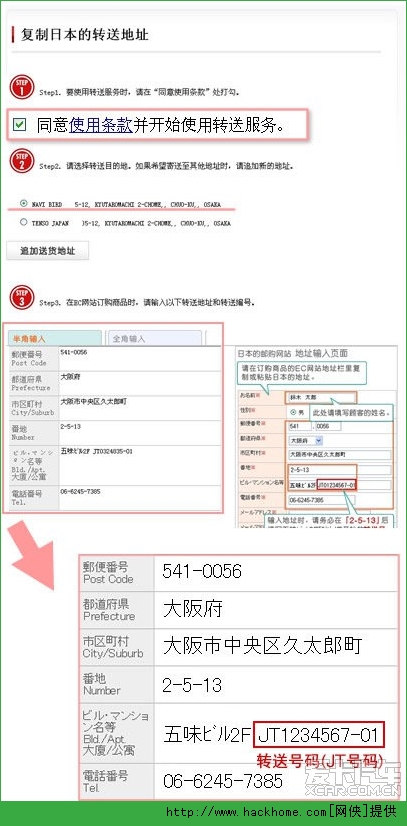 3.回到官網下一步操作,填寫收貨地址,把轉運公司的地址及轉送號碼對應填寫,名字可以寫你的拼音姓名,日文姓名隨便復制一個日本字就可以。4.官網再下一步,信用卡信息復制收貨地址的就可以了。PS:警告,各位千萬不要把自己的轉運地址識別碼洩露出去,注意安全