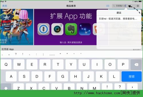 這裡以iPad 為例,比如我這裡要搜索“百度輸入法”應用,但搜索以後不給反應,搜索不了。