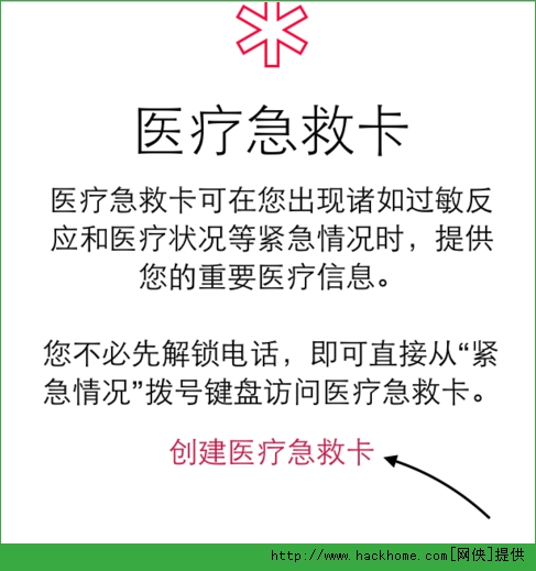 在醫療急救卡界面中點擊“創建醫療急救卡”選項,如圖所示