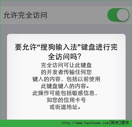 第三步、接著會提示是否要讓搜狗輸入法完全訪問我們的信息,可以選擇允許或不允許。