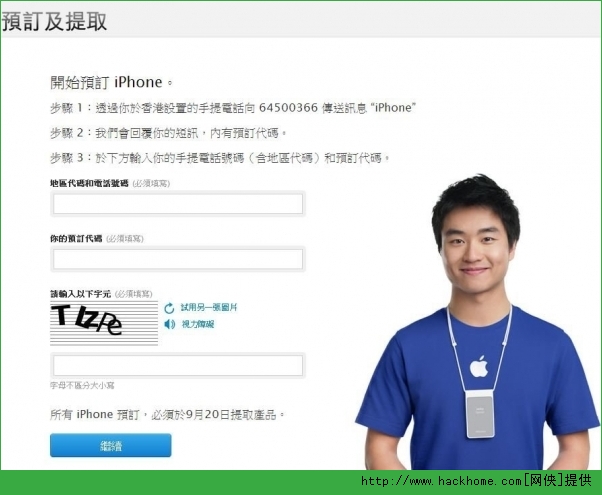 如果頁面出錯,可以打開http://www.apple.com/hk/retail/通過點擊“預訂”進入。(由於暫時沒有開放,所以暫時以文字描述)