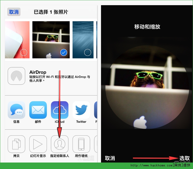 第五步:你可以選擇立即拍攝一張新照片或者選擇一張已有的照片。本例子中我們選擇打開相機膠卷挑選一張現有的照片。