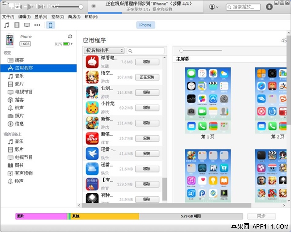第三步,同步完成後,在iPhone主屏幕上即可出現安裝成功的應用圖標。