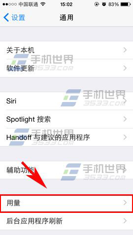 1)打開iphone5s手機【設置】,點擊【通用】,選擇【用量】。