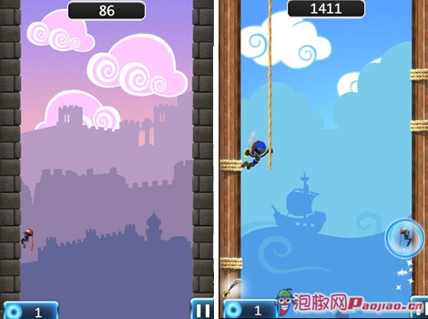 忍者跳躍(NinJump)是一款耐玩性非常高的游戲。不同於傳統的跳躍游戲,忍者跳躍(NinJump)1.3最新豪華版不論是游戲性,還是游戲元素上都有了很大的飛躍和提高,絕對是iPhone椒友日常空閒之時消磨時光的好游戲。這款游戲凌少用iPhone 3G也試玩了,運行流暢,沒有出現卡機的現象,iPhone 3G的椒友也可以下載。