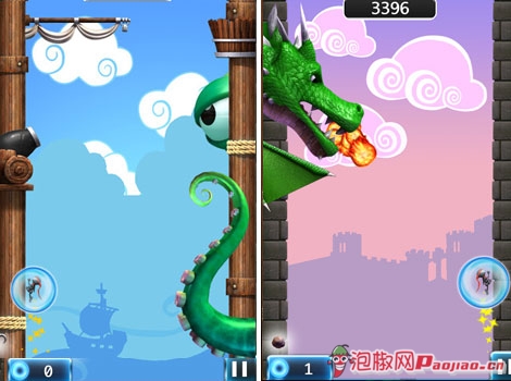 忍者跳躍(NinJump)-當分數達到了一定高度之後,就會碰到BOSS。BOSS的攻擊非常犀利,玩家在那個時候,最好是頂起自己的防護罩。