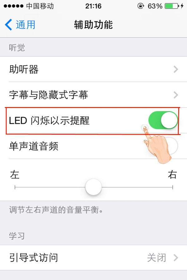 來電顯示閃光燈的設置方法:打開設置應用後,點擊進入“通用”選項頁面,再進入輔助功能頁面,找到聽覺欄目下打開“LED閃爍以示提醒”功能,即可啟用來電顯示閃光燈功能。