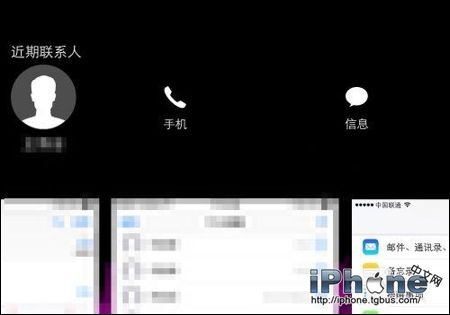 1、以當前最新的 iOS8 系統為例,蘋果在後台多任務界面裡增加了一個“最近通話”的功能,只要我們連續二次按下“home”主屏按鈕,即可看到。