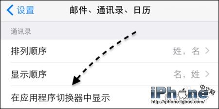 5、接著在“郵件、通訊錄、日歷”列表裡點擊“在應用程序切換器中顯示”一欄,如圖所示