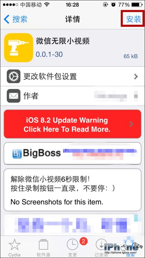 4、點擊搜索出來的微信無限小視頻,點擊右上方的安裝。