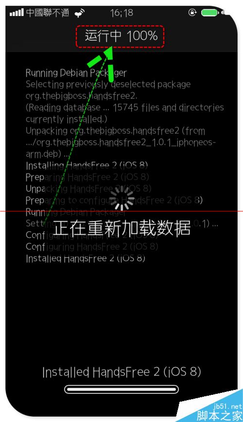6、接下來就是熟悉的cydia安裝過程,在上方會顯示安裝進度。安裝完成之後根據第一部分的說明去設置進行相關設定即可。