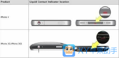 每部iPhone都配備了多個傳感器,與液體接觸後就會變成紅色。如果它們變紅了,那麼,這部iPhone大多是進過水了。你可以依照下圖檢查一下指示標(這是蘋果的圖):