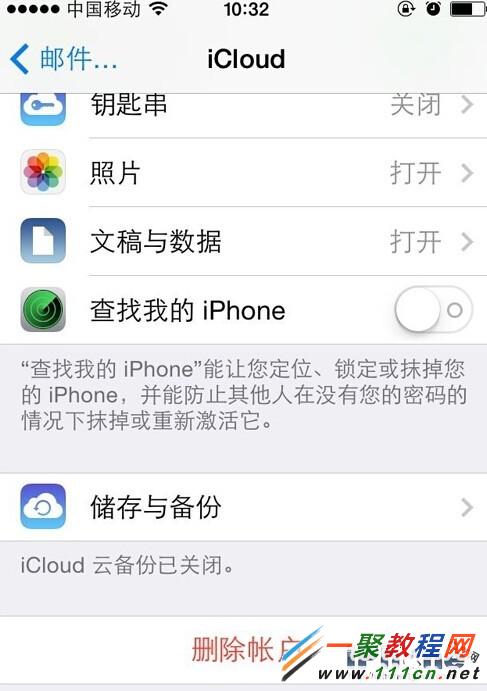 刪除電子郵件附件。通常下載電子郵件文件會占用大量空間,解決該問題的辦法就是刪除電子郵件賬戶,具體操作為:設置->郵件、通訊錄、日歷->iCloud,然後向下滾動至最後,點擊刪除賬戶。當然需要注意的一點是,在刪除之前,你要確保自己記得郵件賬戶密碼,因為還要重新添加回來。