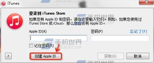 2)在大家點擊獲取時,會彈出Apple ID登陸框,在登陸框裡,有個創建Apple ID按鈕,點擊進入。(如下圖所示)