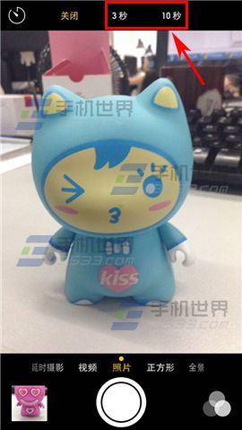 1)首先,打開iPhone6的【相機】,點擊界面上方【時鐘圖標】,選擇一個延時拍照時長。(如下圖)