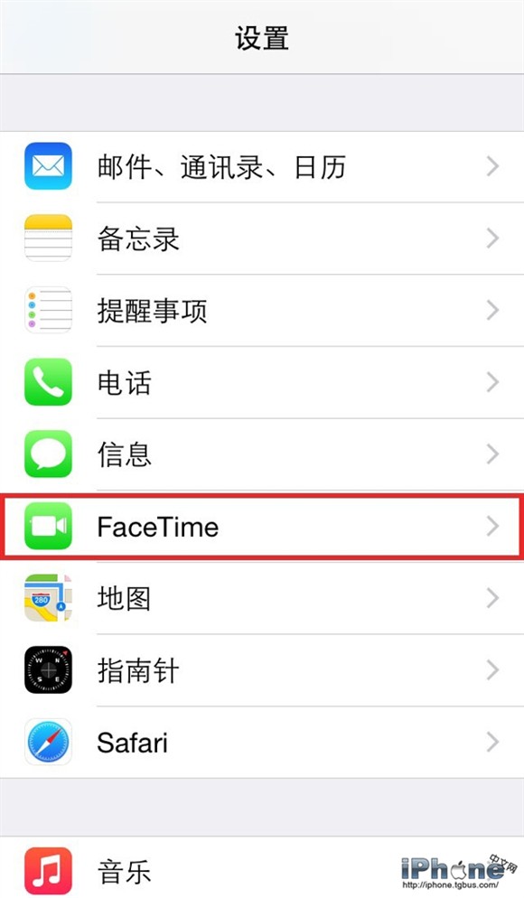 2、滾動屏幕,找到並選擇“FaceTime”項;