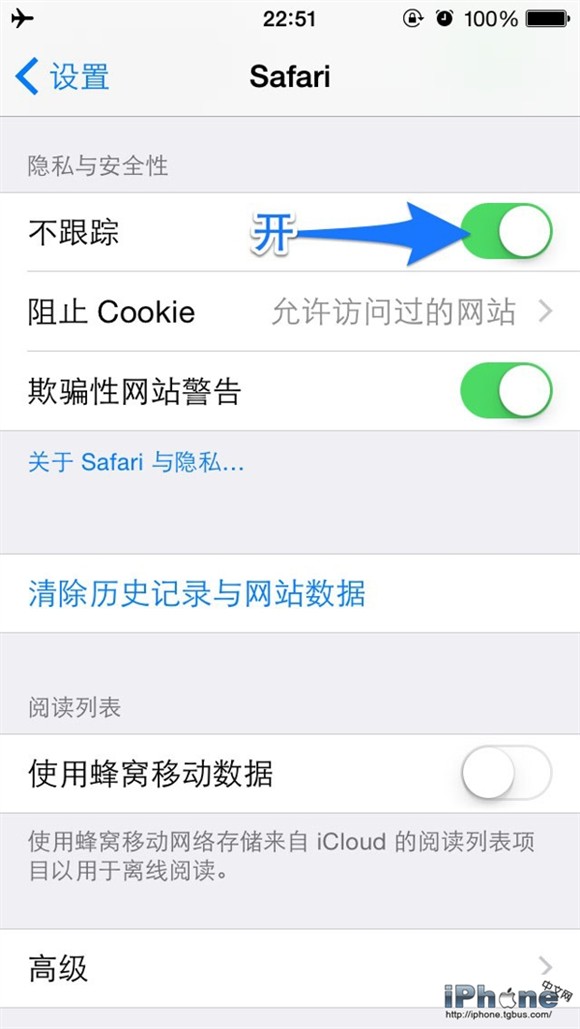4. 進入“設置”-“Safari”,打開“不跟蹤”功能。