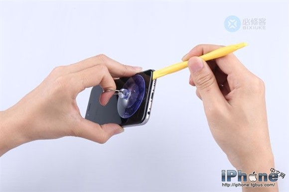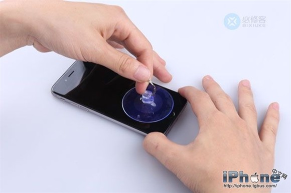 3、用吸盤吸住屏幕靠home鍵的位置